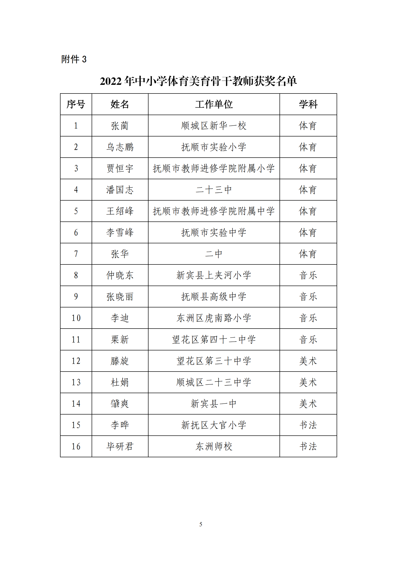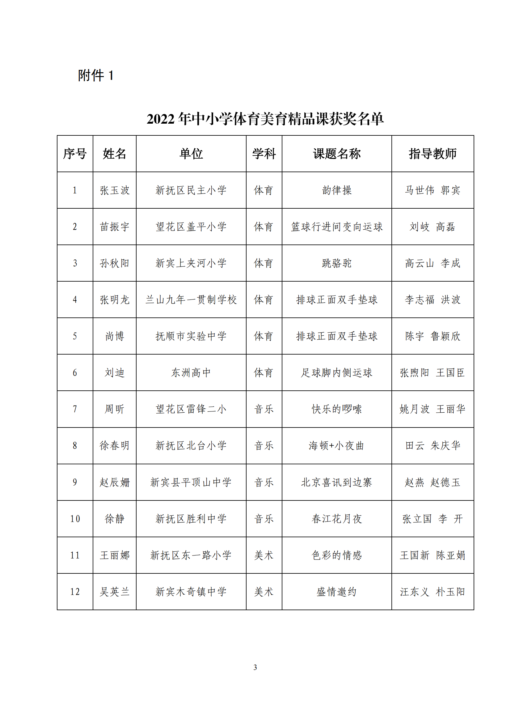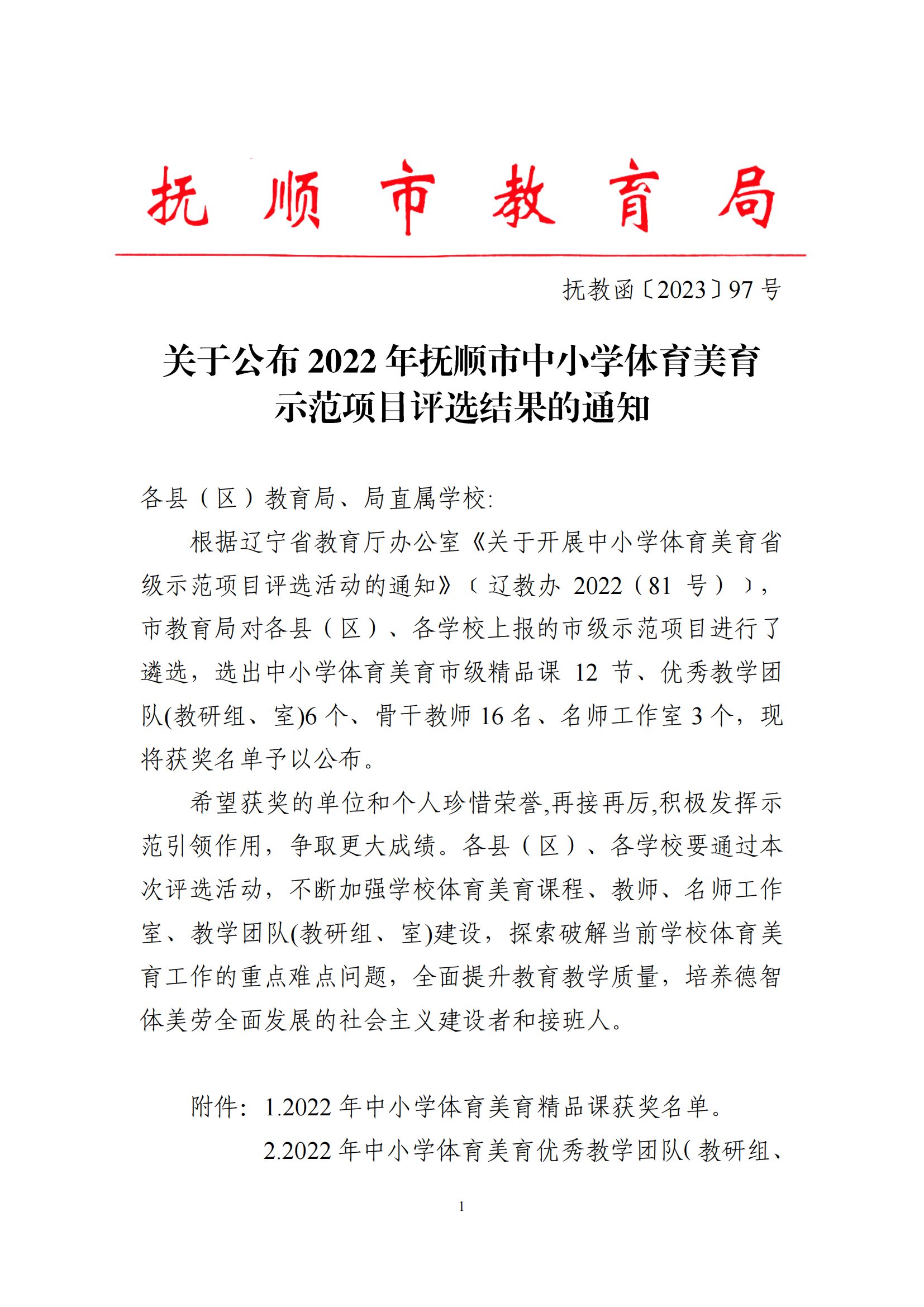 关于公布2022年抚顺市中小学体育美育示范项目评选结果的通知