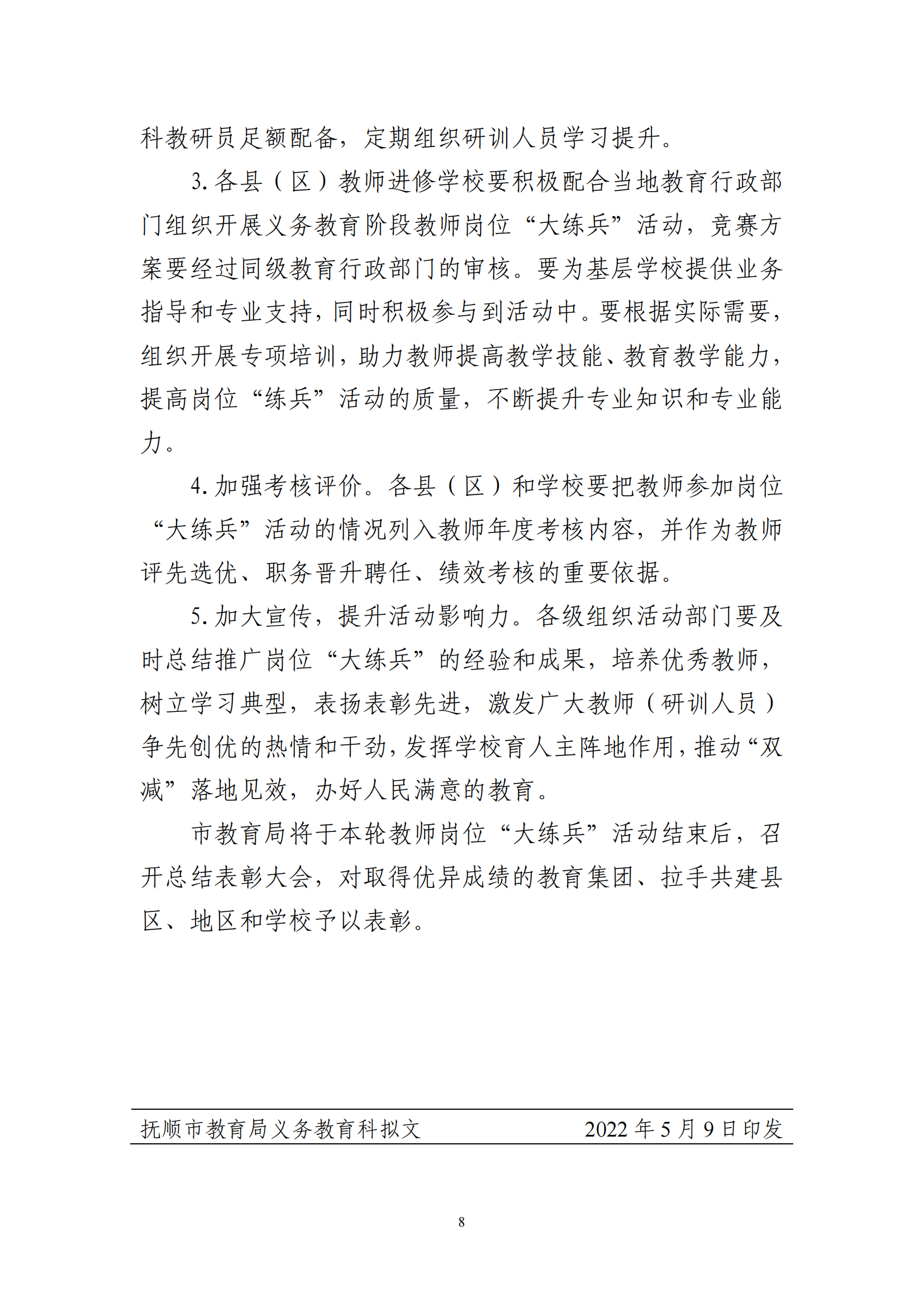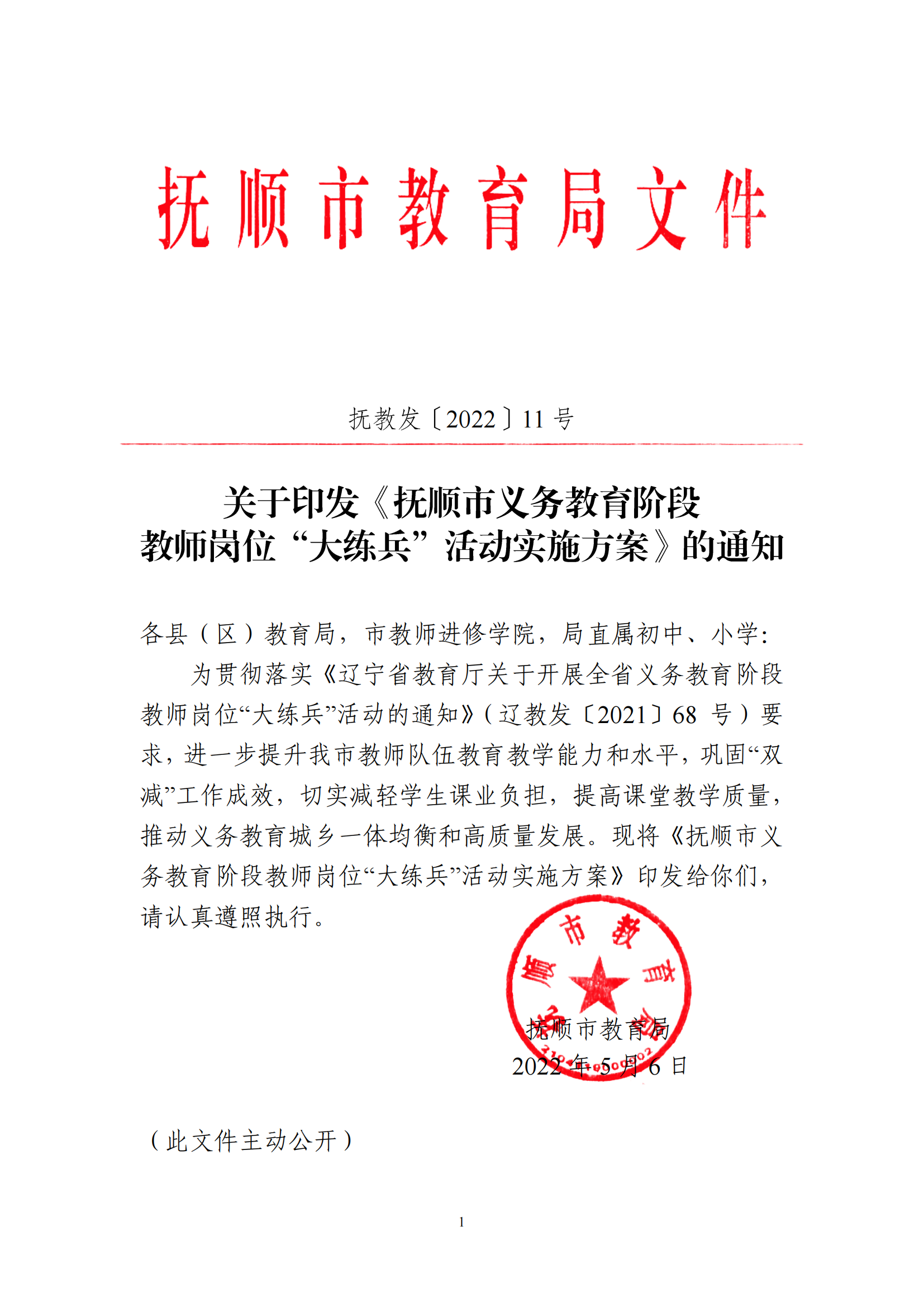 关于印发《抚顺市义务教育阶段教师岗位“大练兵”活动实施方案》的通知